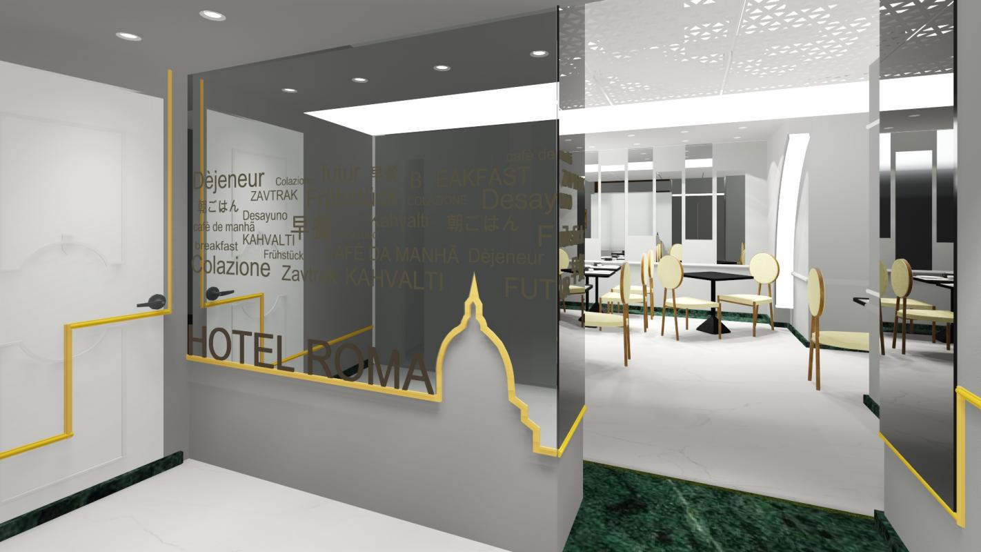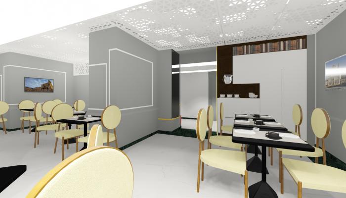 L'intervento consiste nella riorganizzazione della sala colazione posta all'interno dell'albergo.